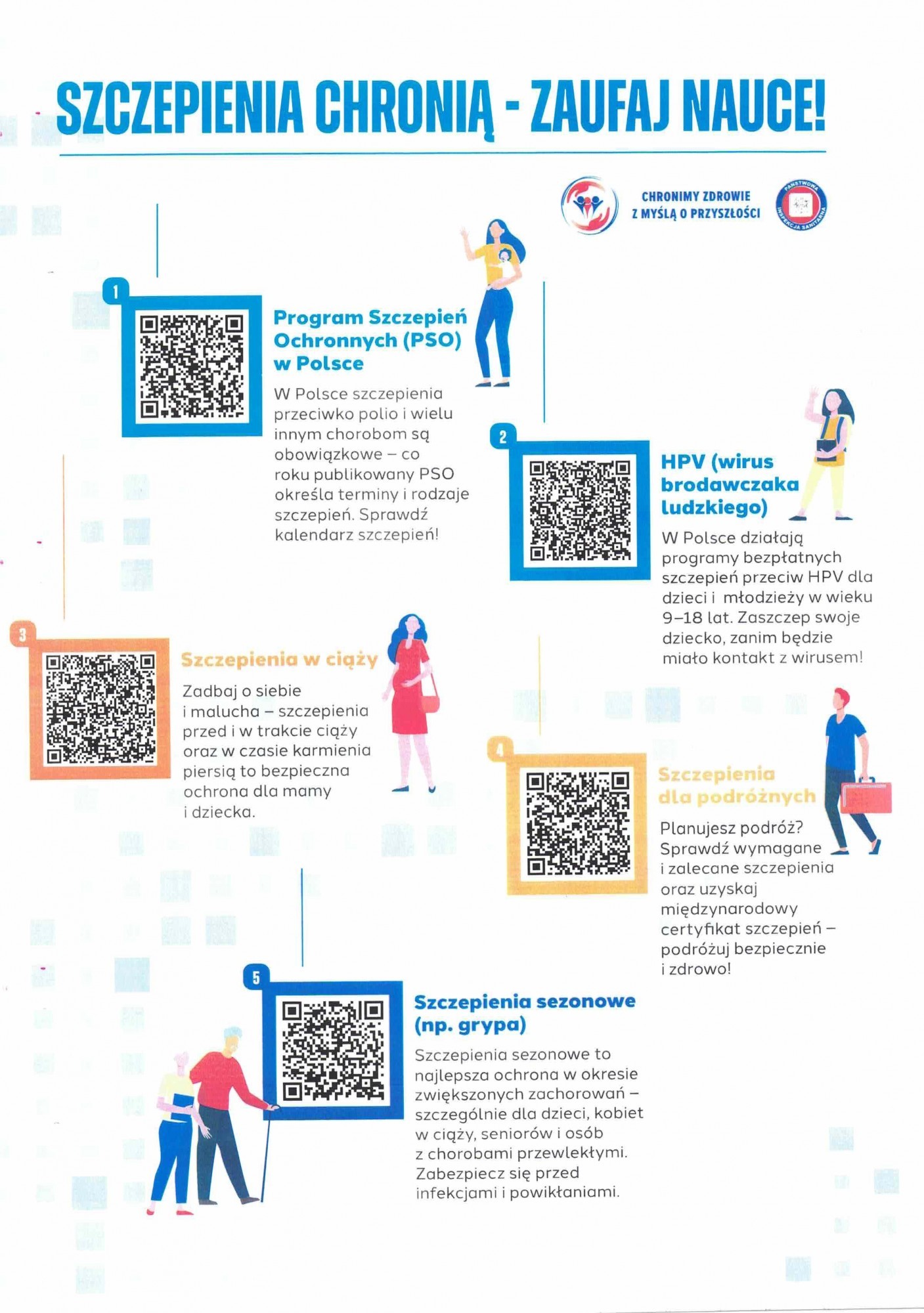 Zapraszamy do zapoznania się z materiałami i aktywnego udziału w kampanii informacyjno-edukacyjnej pn. „Jesień bez infekcji”, zainicjowanej przez GIS. Celem kampanii jest promocja szczepień ochronnych przeciwko chorobom infekcyjnym, nasilającym się w sezonie jesienno-zimowym (grypa, covid-19, RSV, krztusiec, pneumokoki).